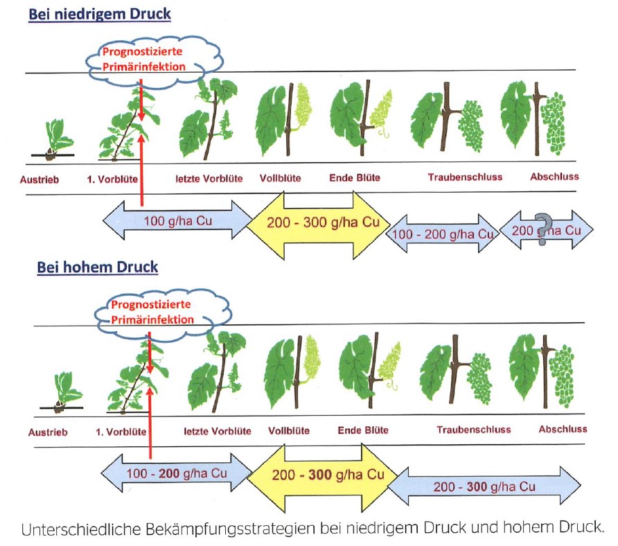 Le modèle de prévision adapté vise à réduire l’application d’agents de protection des cultures à un point tel que les stades de développement sensibles des nouveaux cépages soient protégés en toute sécurité et que les mécanismes sous-jacents de résistance ne soient pas influencés négativement par le peronospora de la vigne.
